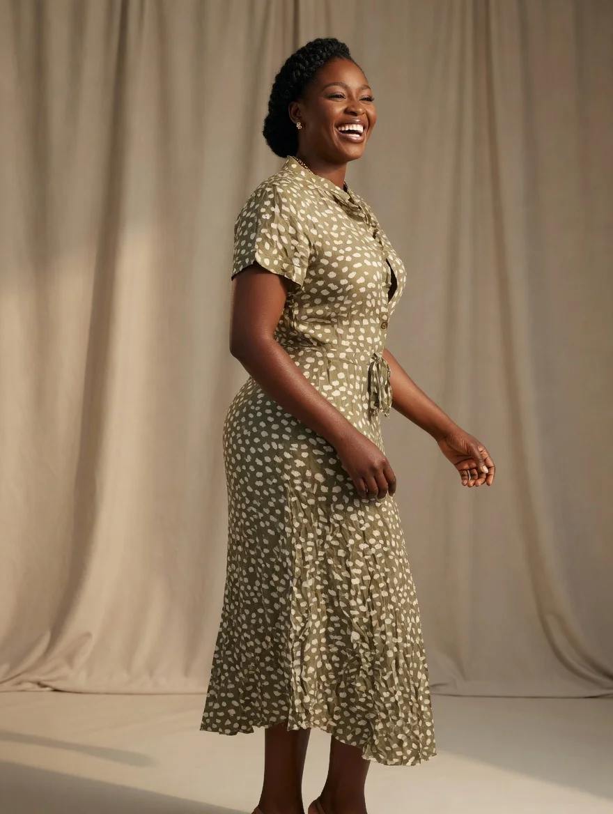Be the first to review “Olive Green Polka Dot Button-Front Midi Dress”